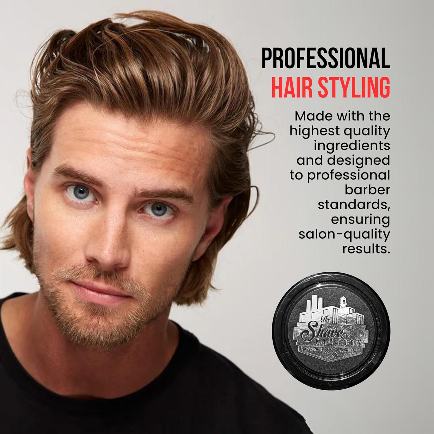 Infused with a fresh, subtle fragrance, The Shave Factory Matte Clay enhances the grooming experience, making it a favorite both in barbershops and for everyday personal use. The water-soluble formula also ensures easy washout at the end of the day, with no buildup or heaviness left behind.