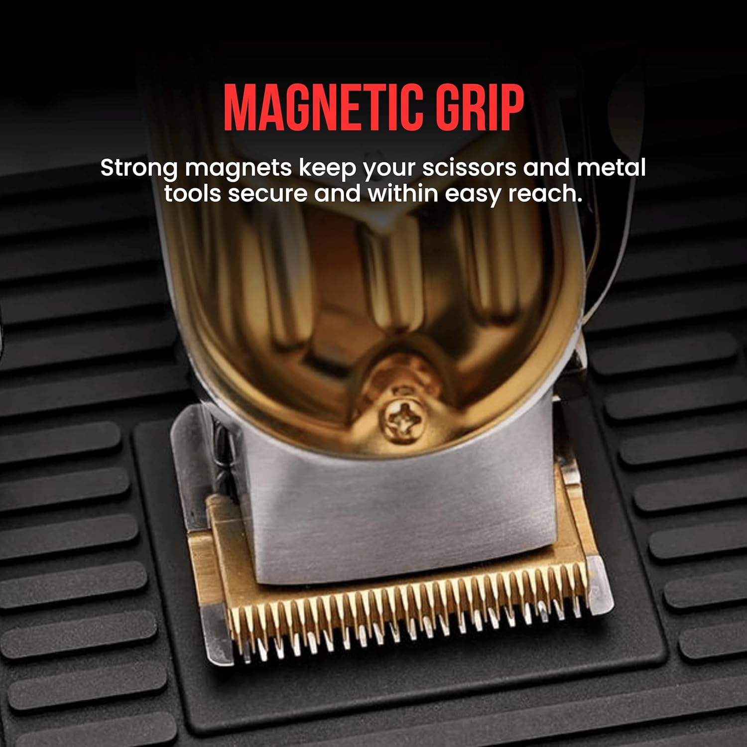 The Shave Factory magnetic station mat is an essential tool designed specifically for barbers and hairdressers to keep their workstations organized and professional. This innovative mat features strong built-in magnets, ensuring that your tools and accessories stay securely in place, preventing any slipping or falling, even during busy work sessions.