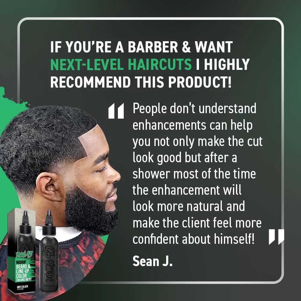 Tomb45 No Drip Color lives up to its name—featuring a no-drip formula that allows for easy application and ultimate control. Whether you're enhancing a hairline, filling in a beard, or creating a fuller appearance, this Onyx Black shade provides a deep, rich color that looks natural and sharp. It’s perfect for boosting the look of faded or thinning areas, giving your clients a clean, defined appearance that lasts.