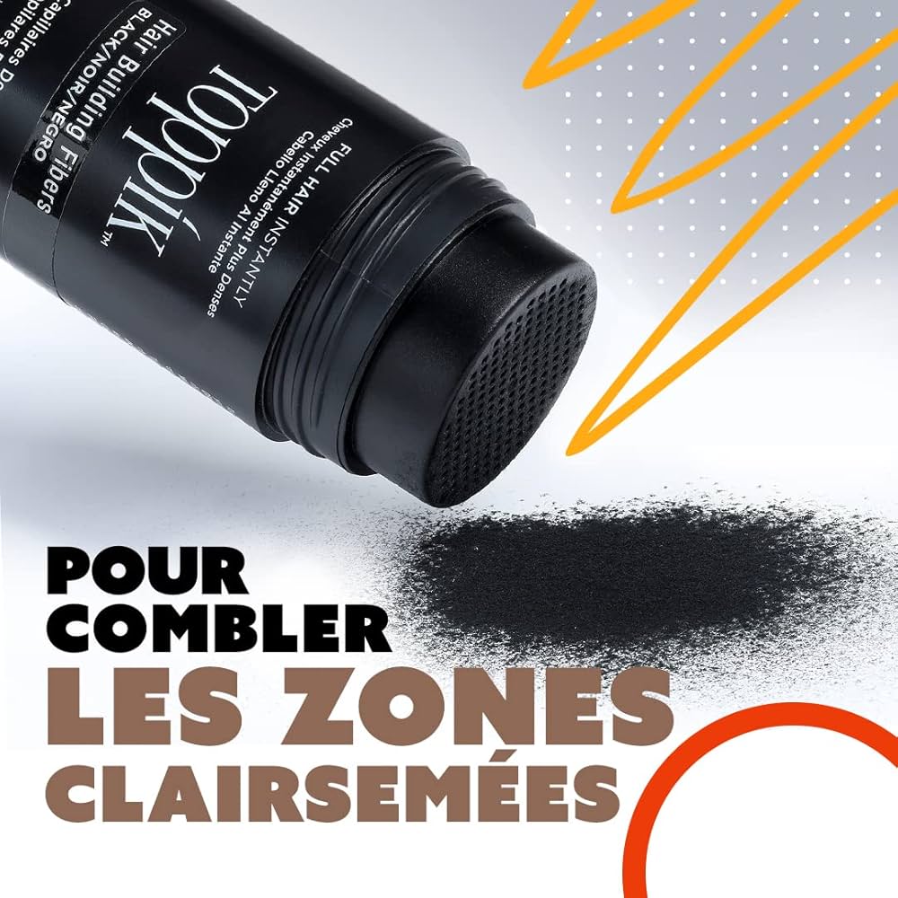 Crafted from colored keratin protein, Toppik Hair Building Fibers seamlessly blend with your existing hair strands. The keratin protein mimics the natural look and feel of real hair, making the results virtually undetectable. This allows users to confidently enhance their hair's volume and density without anyone noticing.