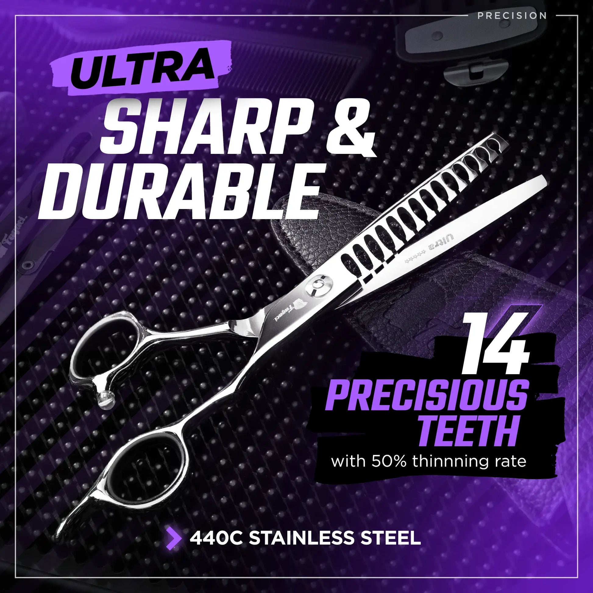 - PREMIUM QUALITY STEEL - Fagaci Ultra blending shears for hair cutting are crafted from premium 440C stainless steel, renowned as elite steel that delivers unparalleled durability, sharpness, and precision.