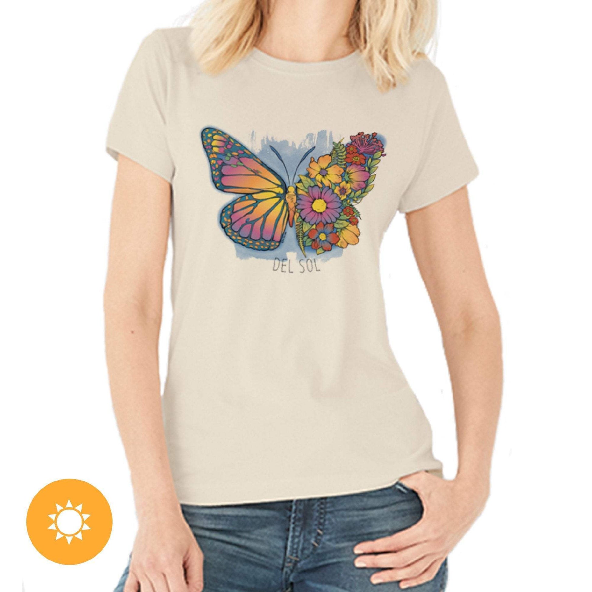 Women Crew Tee - Butterfly Floral - Beige by DelSol for Women - 1 Pc T-Shirt (Large)